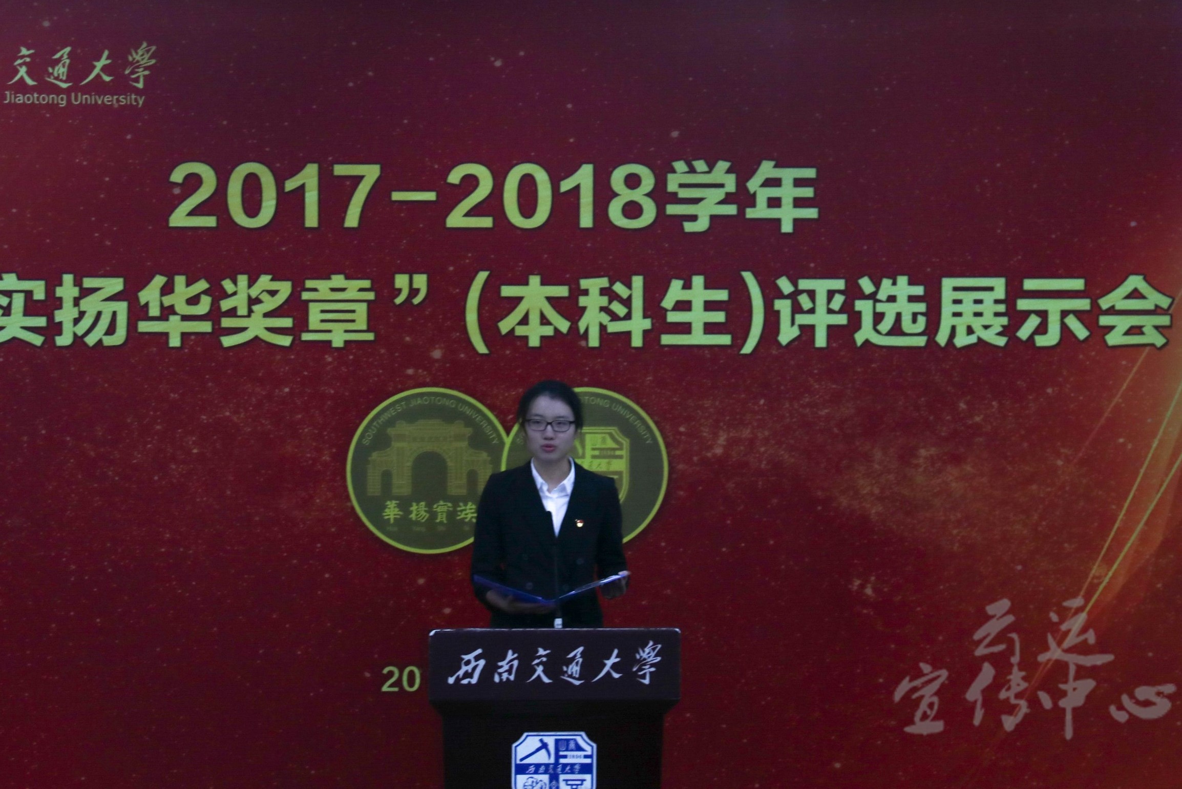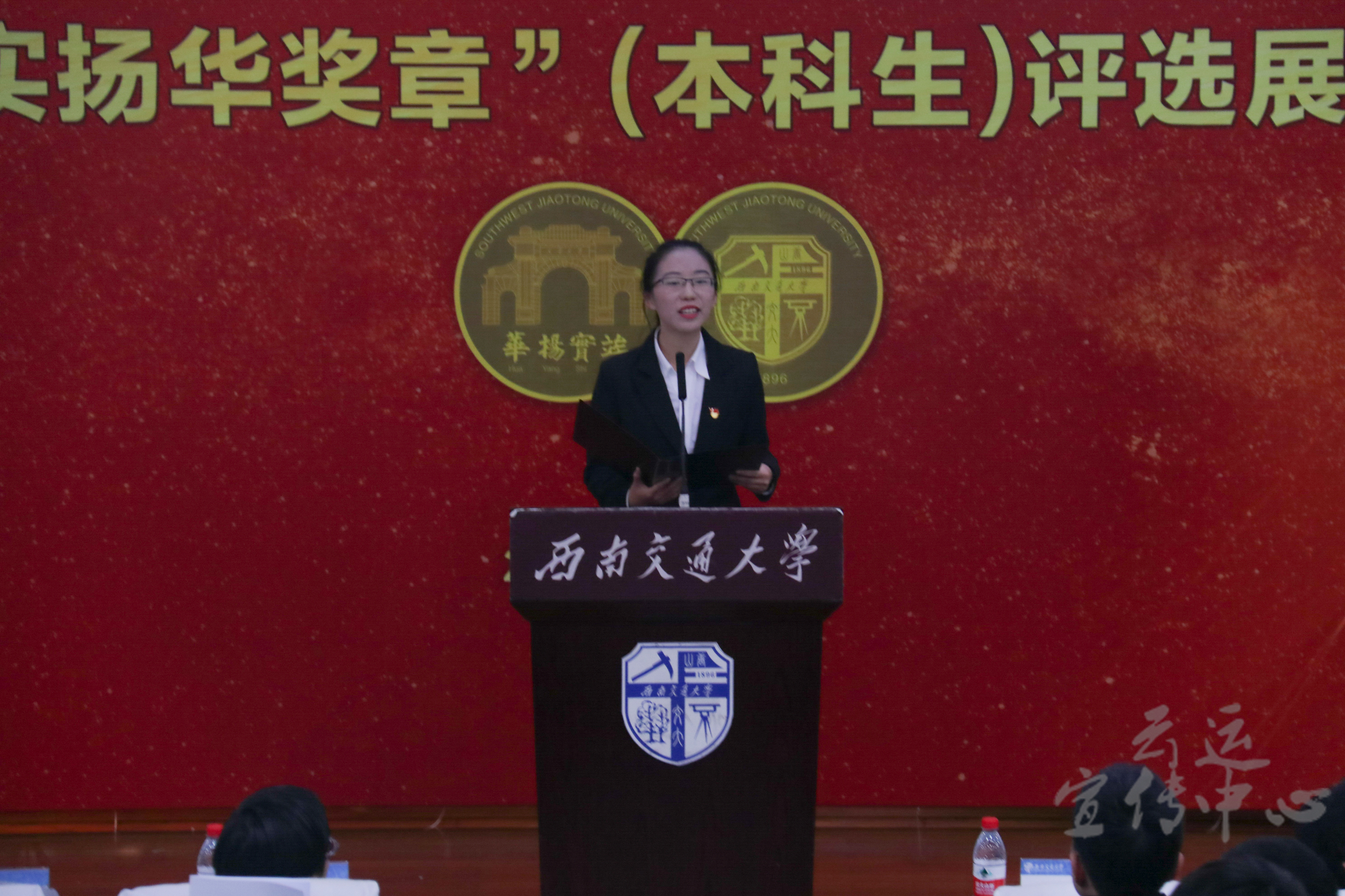 在今天的“竢实扬华奖章”(本科生)评选展示会上,交大优秀学子齐聚一堂,既是竞争较量,也是交流分享,他们通过自己的经历与荣誉,传递给交大学子们继续奋斗的信念和振兴交大的激情,将“竢实扬华,自强不息”的精神代代相传。(记者:冯善源 陈琦升 袁唯耀 吴沛敏 刘仁飞)