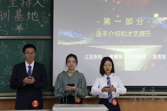 比赛分为自我介绍和小组才艺展示、自由视野、模拟主持三个部分。