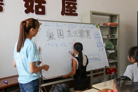 下午15:00,实践队开设的爱国主题教育课程在孩子们清脆嘹亮的国歌声展开,实践队员以问题引导式,为员工们普及爱国知识,让他们了解新中国成立时间,爱国名言警句,讲述国旗、国徽的组成元素及特征及爱国先辈们的故事并教授的国徽绘画方法,激起了孩子们心中澎湃的爱国热情。少年强则国强,少年有担当则国运兴旺,以爱国主义教育为核心的德育建设是青少年价值观形成过程中的重要一环,云情运卿实践队始终以“树德育人”为价值向导,积极响应习近平总书记“爱国主义是中国梦”号召,为塑造爱国爱家的青少年价值认知体系做积极努力。