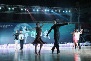 团体比赛暂告一段落,扬音吉他社也带来精彩绝伦的表演,随即单双人赛也如火如荼地开展起来,包含单人伦巴、单人恰恰、单人华尔兹、双人伦巴和双人恰恰五个项目,其中有来自西南民族大学的参赛选手。选手们精妙绝伦的舞姿,伴随着扣人心弦的音乐,激起了观众们热情高涨的呼喊声。