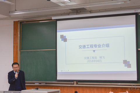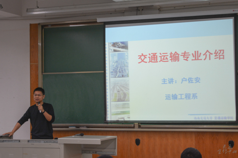 接下来,户佐安老师首先从专业简介、课程设置、团队队伍和就业去向等四个方面为同学们介绍了交通运输专业,让同学们对自己未来的就业前景、发展空间有了初步的了解。随后,杨飞老师从专业简介、团队力量、培养目标、实践基地和国际交流等五个方面为同学们介绍了交通工程专业,让同学们对交通工程有了较为全面的了解。