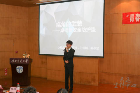 比赛选手按安全提案、平面设计、实物模型三个模块顺序依次上场答辩,每个队伍答辩时间为5分钟,答辩人为大家展示创作的目的、创新点和实用性。