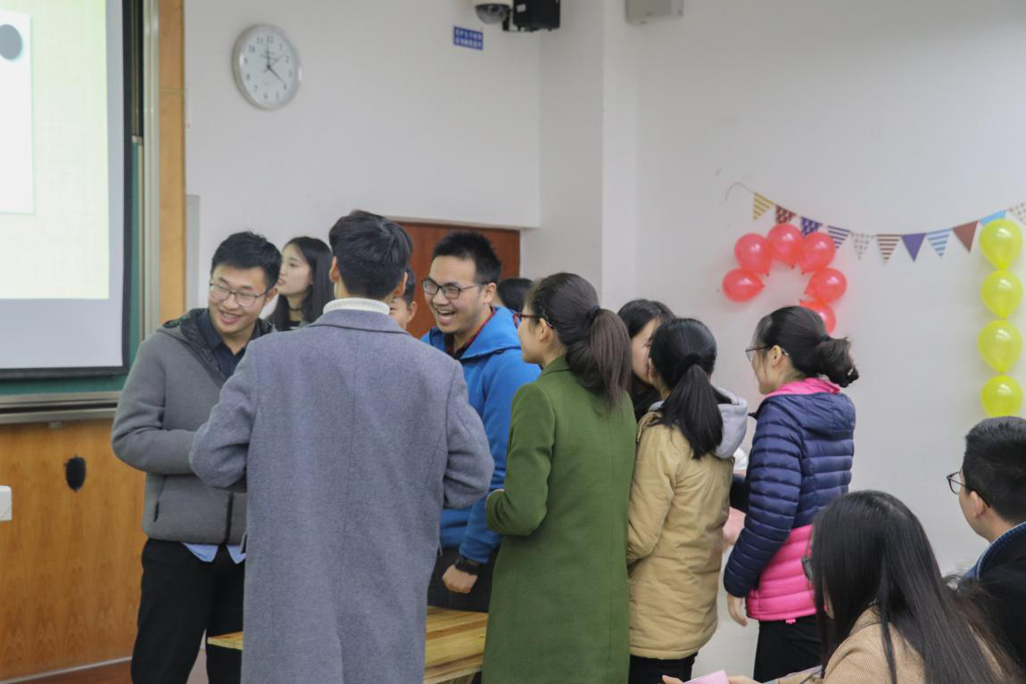 经过了一番头脑风暴之后,“兵乓球纸杯接力”游戏紧随其后,既让大家在游戏中放松,也让大家相互之间有进一步的了解。在进行了短短的游戏环节之后,又回到了知识竞答的现场。此环节采用对抗抢答的方式,由两个班之间进行对抗抢答。整个活动过程中,参赛队伍之间竞争十分激烈,在主持人说完抢答开始后,双方抢答铃几乎同时响起,各个小组之间都是以非常细微的时间获得答题机会。