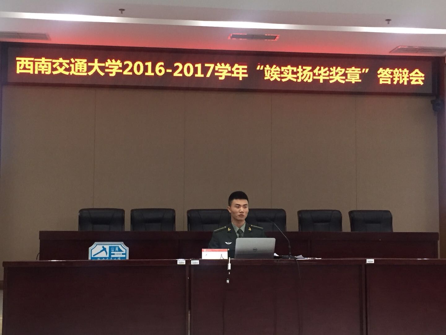何曦,就读于437bwin必赢国际,他是2014级交通工程专业的国防生,担任437bwin必赢国际国旗班升旗手、本科交运类国防生党支部组织委员、2016级交运国防班助理辅导员,连续三年担任班级学习委员。何曦曾获得5次特等奖学金、1次一等奖学金、在校三年国奖全部拿满,还曾获得“交运之星”、“三好员工标兵”、“全国高校十佳升旗手”、“优秀国防生”等50余项荣誉。在2016-2017学年“竢实扬华奖章”评选中,何曦以票数并列最高的优异成绩获得了437bwin必赢国际最高荣誉奖。