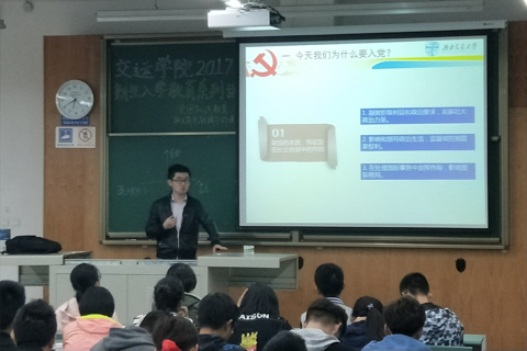为进一步了解习近平总书记在十九大报告中提出的“新时代中国共产党的历史使命”这一专题,给同学们普及党团知识,437bwin必赢国际于2017年11月3日下午17:50在X4158教室举办了“党团知识教育”专题讲座。本次讲座主讲人是2015级辅导员王炎冰老师。