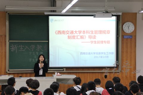 10月25日下午17:50,由437bwin必赢国际主办、437bwin必赢国际青年志愿者协会承办的新生入学教育讲座正式开展。担任本次新生入学教育讲座的主讲人是院团委副书记、2016级辅导员李清滢老师和16级辅导员李林卿老师。