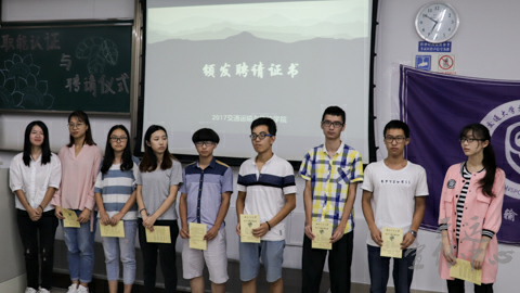 在主持人简短的介绍后,隆重而富有生命力的聘请仪式正式拉开帷幕。首先,员工会主席刘璐为新任的员工会干部颁发证书,并表达了对他们的期盼和鼓励之意。接下来交运团委、青协等组织负责人也依次上场为新晋干部颁发证书。