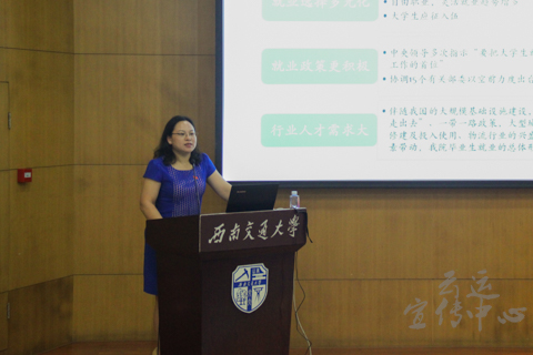 李国芳副书记对公司就业情况进行了介绍。她列举了近年来硕士及博士毕业生就业选择,其中进入国企的毕业生比重较大。同时,李书记还介绍了目前公司各专业的就业特点,并从就业单位的选择、政策、人才选择方面详细介绍了就业形势。