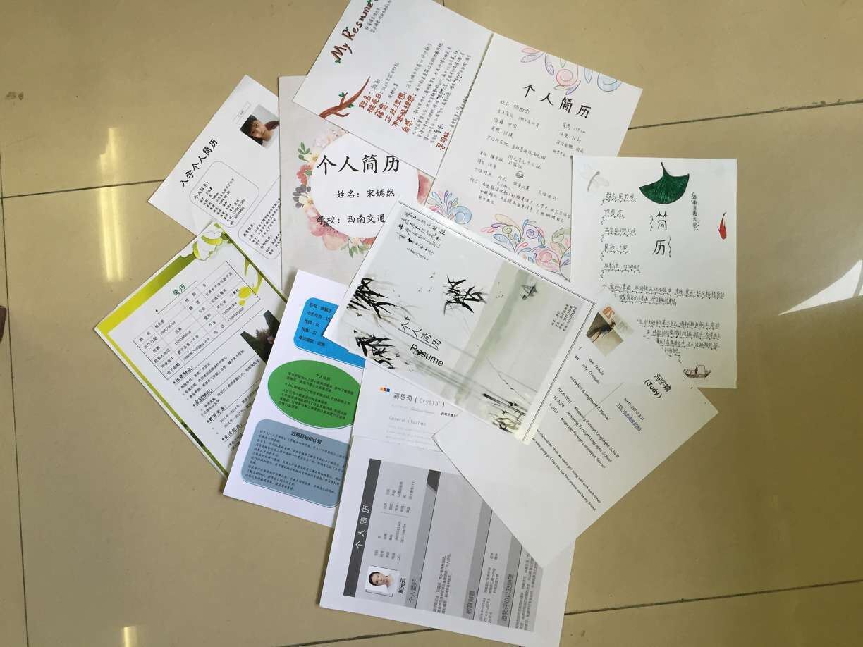 本次活动反响热烈,同学们参与的积极性极高,迎新期间纷纷呈上自己精心制作的简历。从整体观感而言,每一张简历都风格各异,饱含了同学们别出心裁的想象力,其中的创意手绘、精心排版和巧妙构图张扬出新生们不拘一格的表现力,呈现出来自天南地北的同学们各具特色的性格,简历中一行行工整的文字记录下大家的自我总结、自我评判,让同学们在大学这个更大的舞台上展示自我,并且更加客观、全面地深刻认识自我,同学们也在简历中尝试着分享自己的职业生涯规划,对大学进行展望。