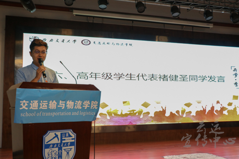 作为公司高年级员工代表的褚健圣同学首先对交大的历史进行了详细介绍,随后他与同学们分享了自己学习的心得体会,即做到有目标有规划,学习专业技能以及正确的价值观念,全方面培养自己的素质,特别是精神方面,胸怀大家,心怀感恩,从而实现完美的人生。随后,交运7班的俞诚成同学代表2017级新生发言。他将老员工活比作三张车票,一为学习与自理,二为理解与包容,三为规划与坚持,从而实现更加光辉的未来。