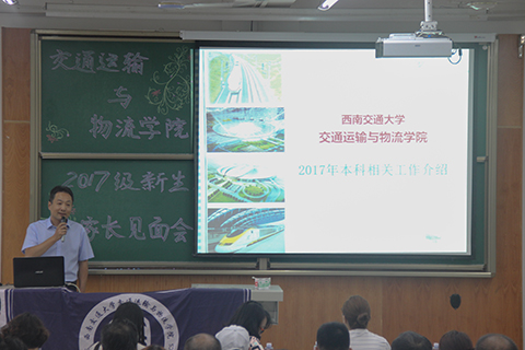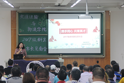 在介绍完到场嘉宾后,雍腾老师对新生及家长们表示热烈的欢迎。随后,马驷副经理对本科生专业和培养情况进行了介绍。马经理首先介绍了公司的办学历史,并介绍了公司各个专业在各领域取得的成果。他还对437bwin必赢国际的包括交通运输、交通工程、物流管理、物流工程以及安全工程在内的五个专业分别进行了介绍,针对其目前国内排名、专业建设水平以及团队力量进行了重点介绍。在专业培养要求方面,他介绍了一些本科教育规范,并针对詹天佑班的办学方式以及选拔进行了详细介绍。
