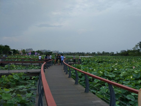 7月13日与会各高校师生登上涪江之心圣莲岛,身临其境地考察了船山区城市规划建设。圣莲岛,面积约1.47平方公里。随着近几年圣莲岛的全面规划、开发,全岛容积率为0.25,绿地率为60%以上,这里已经成为一座生态岛、文化岛、旅游岛,成为名副其实的遂宁“城市之心”。这让师生代表们感受到了遂宁市作为观音故里的深厚文化底蕴,同时也感受到了船山区发展绿色经济、生态文明的执政理念。
