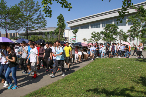 下午16:00,警报响起,南区宿舍区的同学们有序地离开宿舍,按照疏散路线,迅速地撤离到南区体育场和北区体育场,虽然路上挤满了人,但是并没有发生拥堵踩踏的情况。到达体育场后,同学们迅速地找到各个公司的队伍位置,井然有序地排好队。在辅导员老师们的指示下,437bwin必赢国际的员工在北区体育场的指定地点集合。