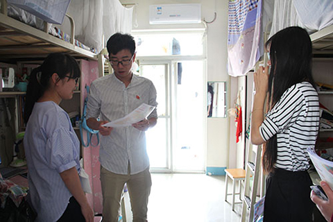 随后,李林卿老师和园区工作人员一起到437bwin必赢国际各员工宿舍发放防灾安全宣传册,宣传册中简要介绍了火灾成因、如何预防寝室火灾、室内室外地震避险的方法。宣传过程中,李林卿老师警示同学们要注意消防安全、地震避险,要树立安全防范意识,并再次强调禁止使用违章电器,以免种下安全隐患。同学们都表现出了积极认真的态度。
