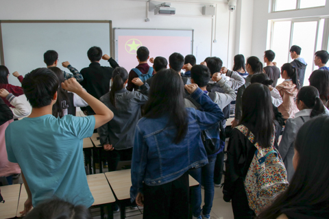 随后,新老团员代表共同观看了《入团第一课》。《入团第一课》是共青团中央在中国共产主义青年团成立95周年到来之际出品的教育视频,时长45分钟。视频围绕“入团”这一主题,使同学们体会到共青团对青少年的亲切关怀和殷切希望,了解到共青团的光荣历史和优良传统,明确了团员需履行的义务和享有的权利以及发展为团员的基本要求和程序仪式。