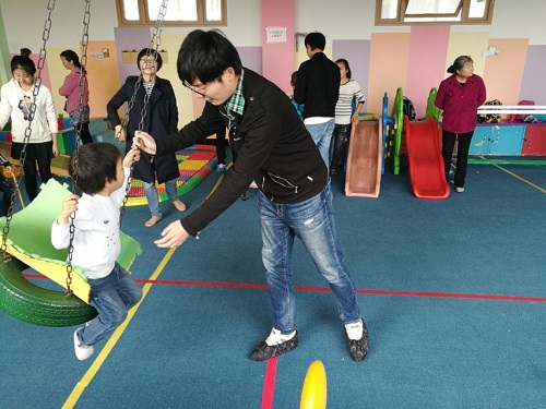 2017年4月14日14:00,本科交运第一党支部和本科交运第三党支部的二十三名同志来到成都“北斗星孤独症儿童训练基地”进行一次不同寻常的志愿活动。在与基地的老师沟通之后,党员志愿者们来到了活动室,协助基地老师和家长陪同孩子们玩耍,进行益智游戏。起初,党员志愿者们有些难以接近孩子们,但在大家不断的善意尝试下,孩子们开始从内心接受这群哥哥姐姐,一起做游戏。很快整个活动室就热闹起来了。孩子们开心地做着游戏,奔跑,堆积木,投篮,荡秋千……党员志愿者们则在一旁引导和保护孩子们,嘴角堆满了笑意。经过一段时间的接触,大家发现这群孩子在心灵最深处,也是热爱运动、喜欢微笑的。