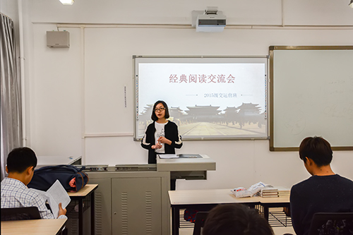4月21日早上9:50,437bwin必赢国际2015级交运詹班“经典阅读交流”特色主题班会在x2107顺利开展。437bwin必赢国际副经理、15级交运詹班班导师马驷老师参加了本次班会。