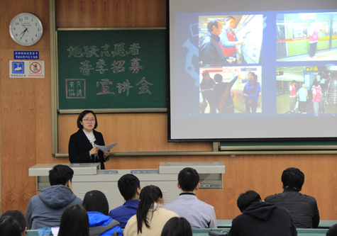 宣讲会中,去年得到认证的成都地铁二星级志愿者徐银为大家交流了经验。徐银同学结合自身志愿服务的经验,建议要参加地铁志愿活动的同学仔细地观察地铁站指示牌的位置和出口及方向,主动热情地为需要帮助的人提供帮助。在服务他人时,善于思考,善于及时询问客服人员。徐银同学认为作为地铁志愿者面临的最大挑战就是要熟练的掌握各个线路并且要灵活地为需要帮助的人选择更近的线路。