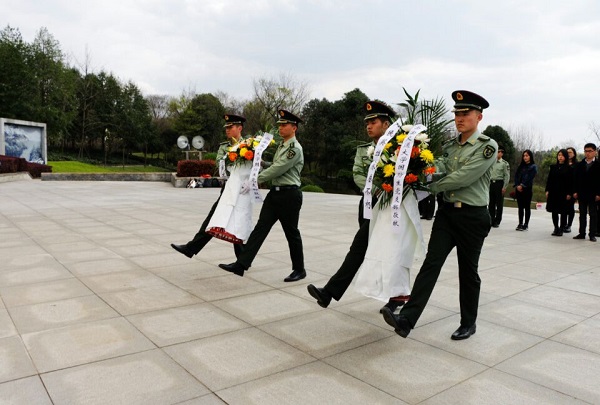 437bwin必赢国际物流类国防生党支部书记王炎冰老师和交运类国防生党支部书记李清滢老师以即将到来的清明节为契机,于3月26日组织带领本科交运类国防生党支部、本科物流类国防生党支部、本科交运第七党支部以及部分国旗班同学前往成都市烈士陵园怀念逝者,缅怀人民英雄。